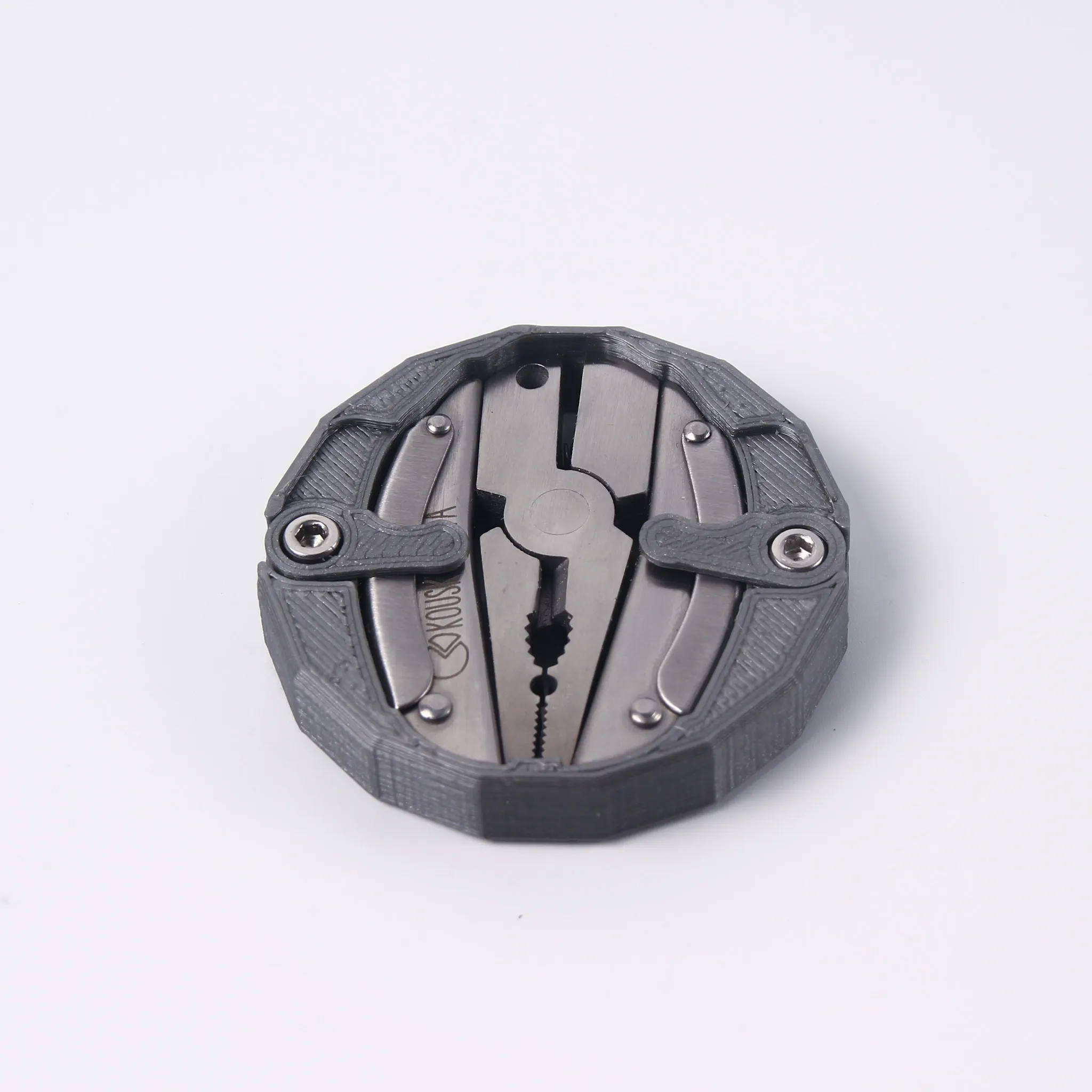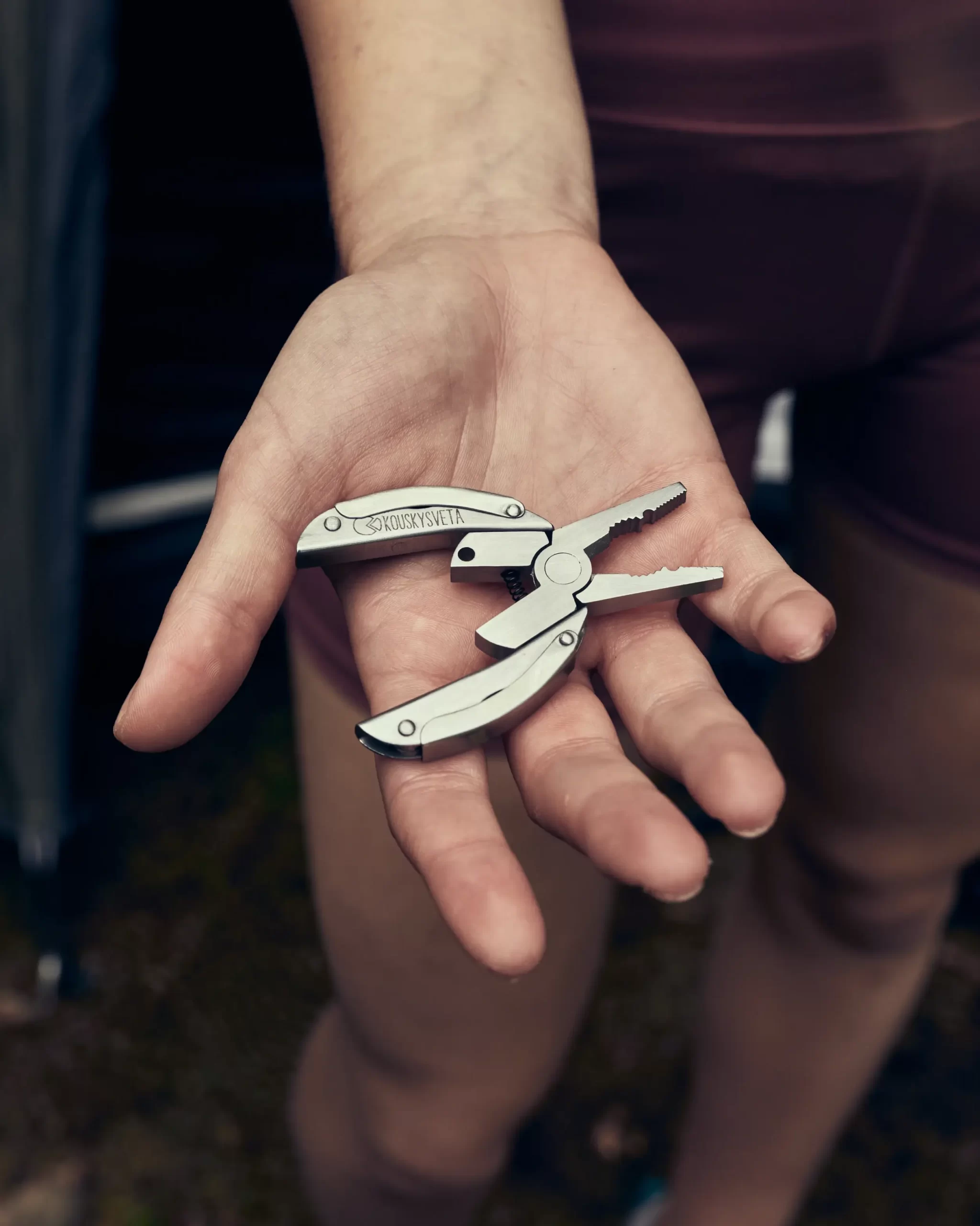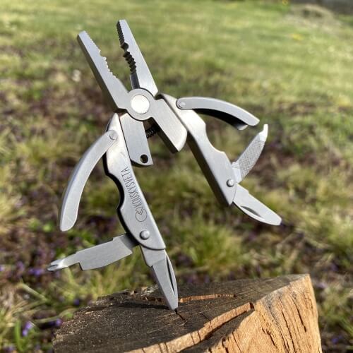 Malé skládací multifunkční kleště, které v sobě navíc ukrývají 5 dalších nástrojů – nožík, pilník, otvírák a dva druhy šroubováků.  Rozměry 5 x 3 x 0,7 cm (po rozložení 7,5 cm)