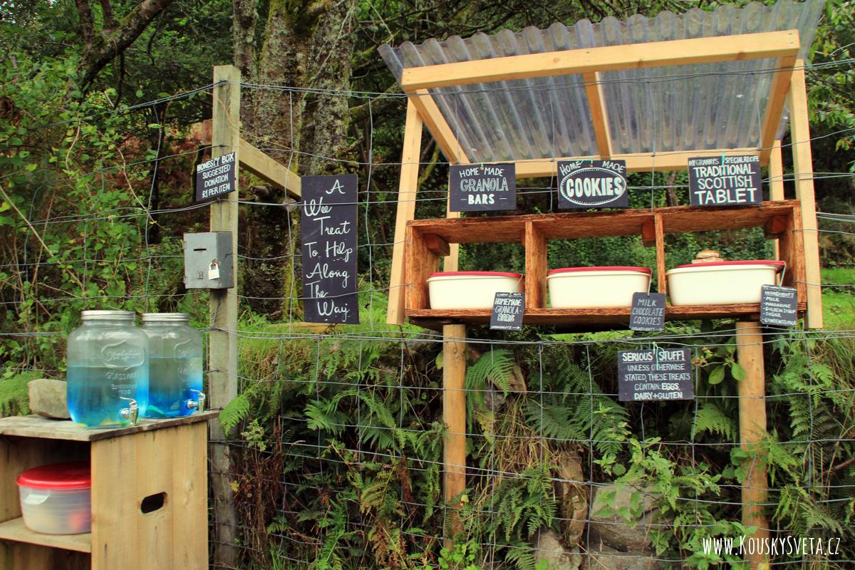 - Honesty boxes – po West Highland way jsou rozmístěny schránky s jídlem, vodou a dalšími různými “pomůckami”. Obvykle za 1 GBP si můžete cokoliv vzít 🙂